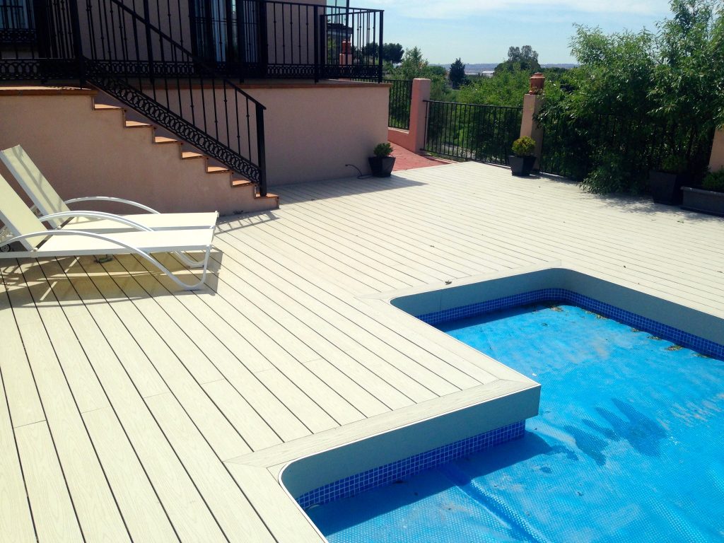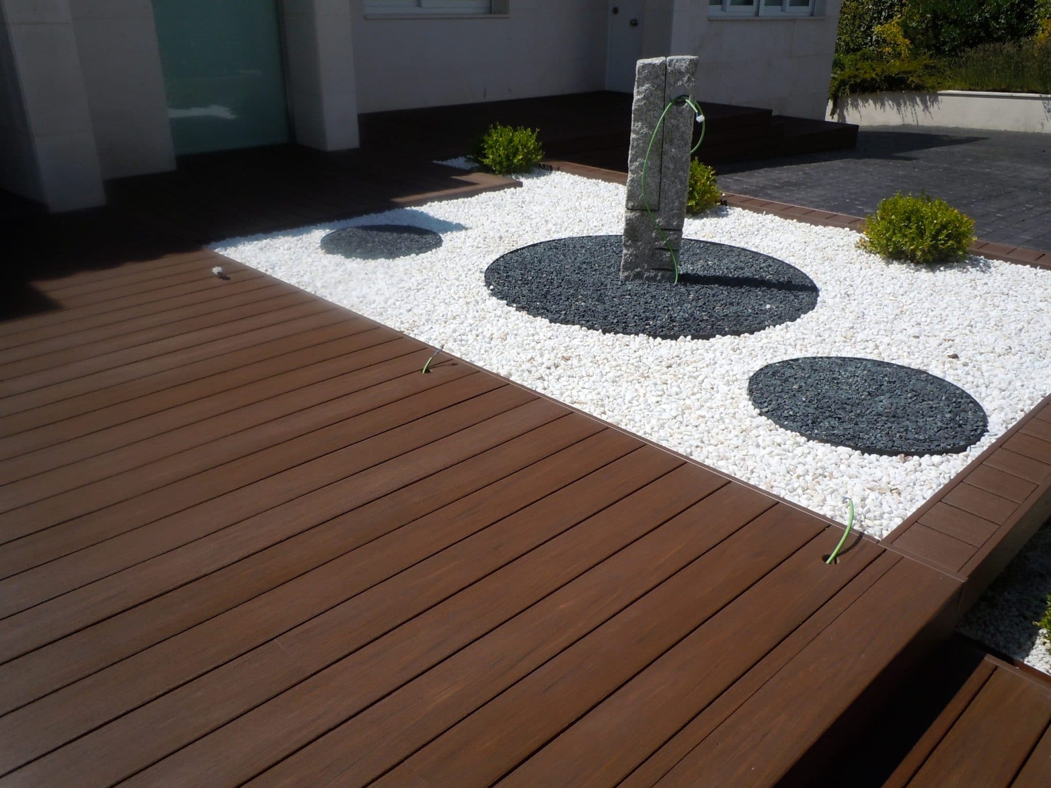 determinados elementos utilizando tarima composite, un material muy resistente y de bajo mantenimiento, ideal para zonas exteriores expuestas.
